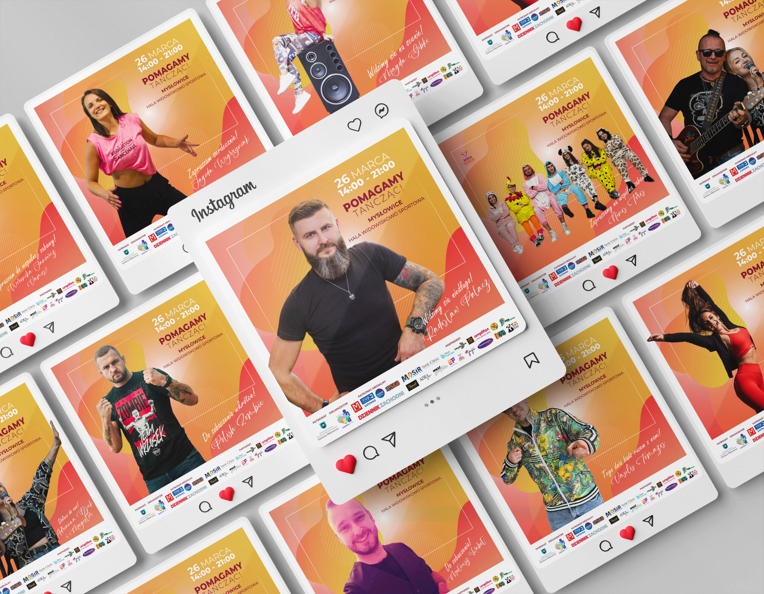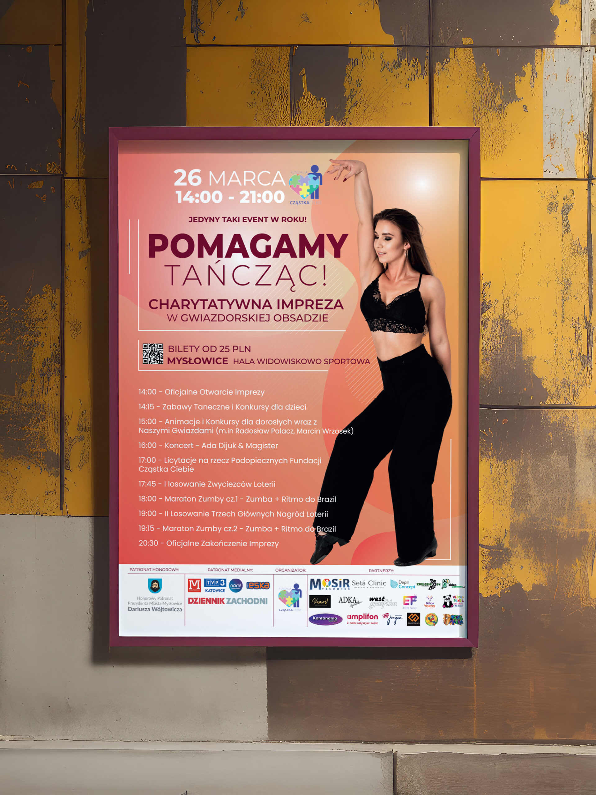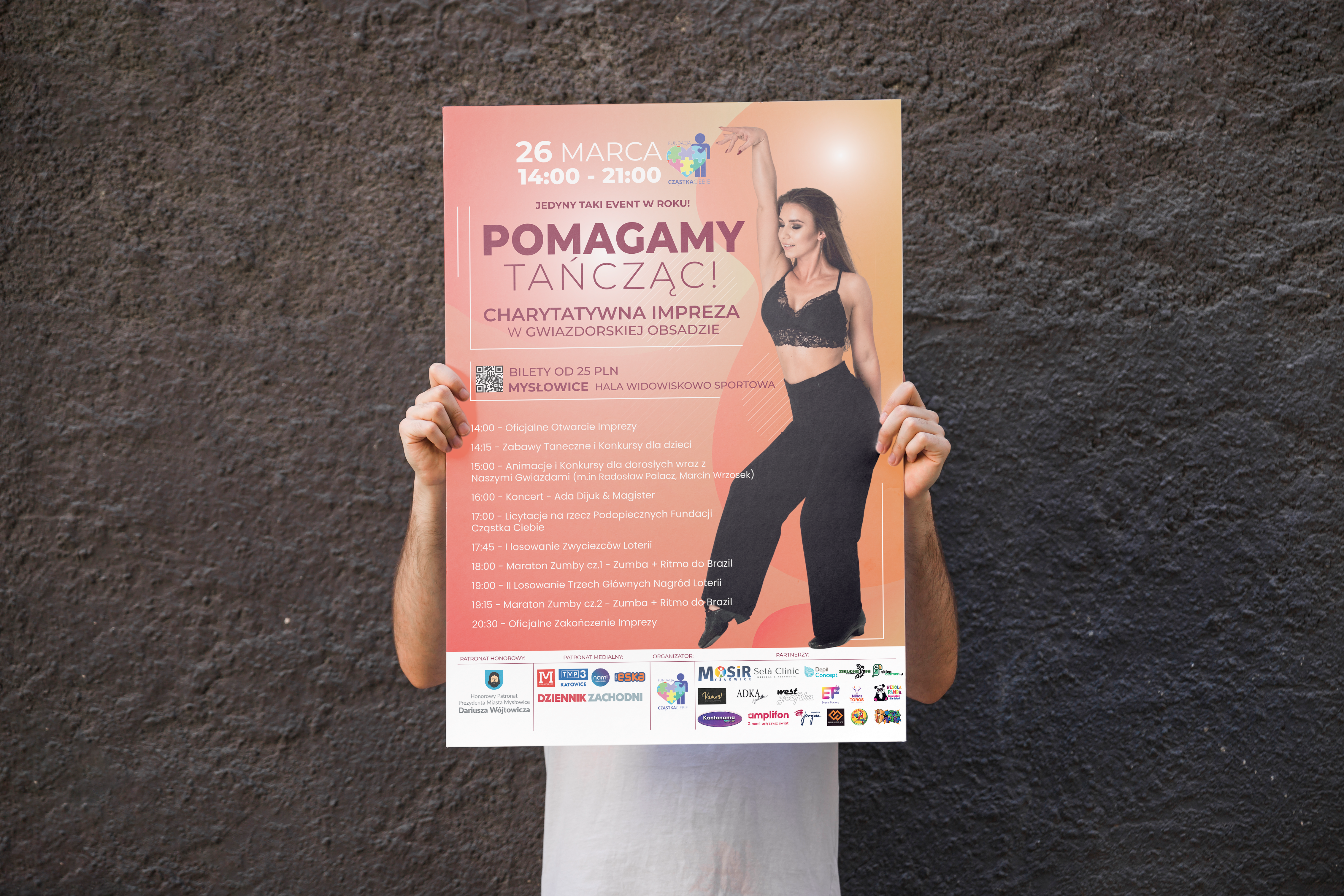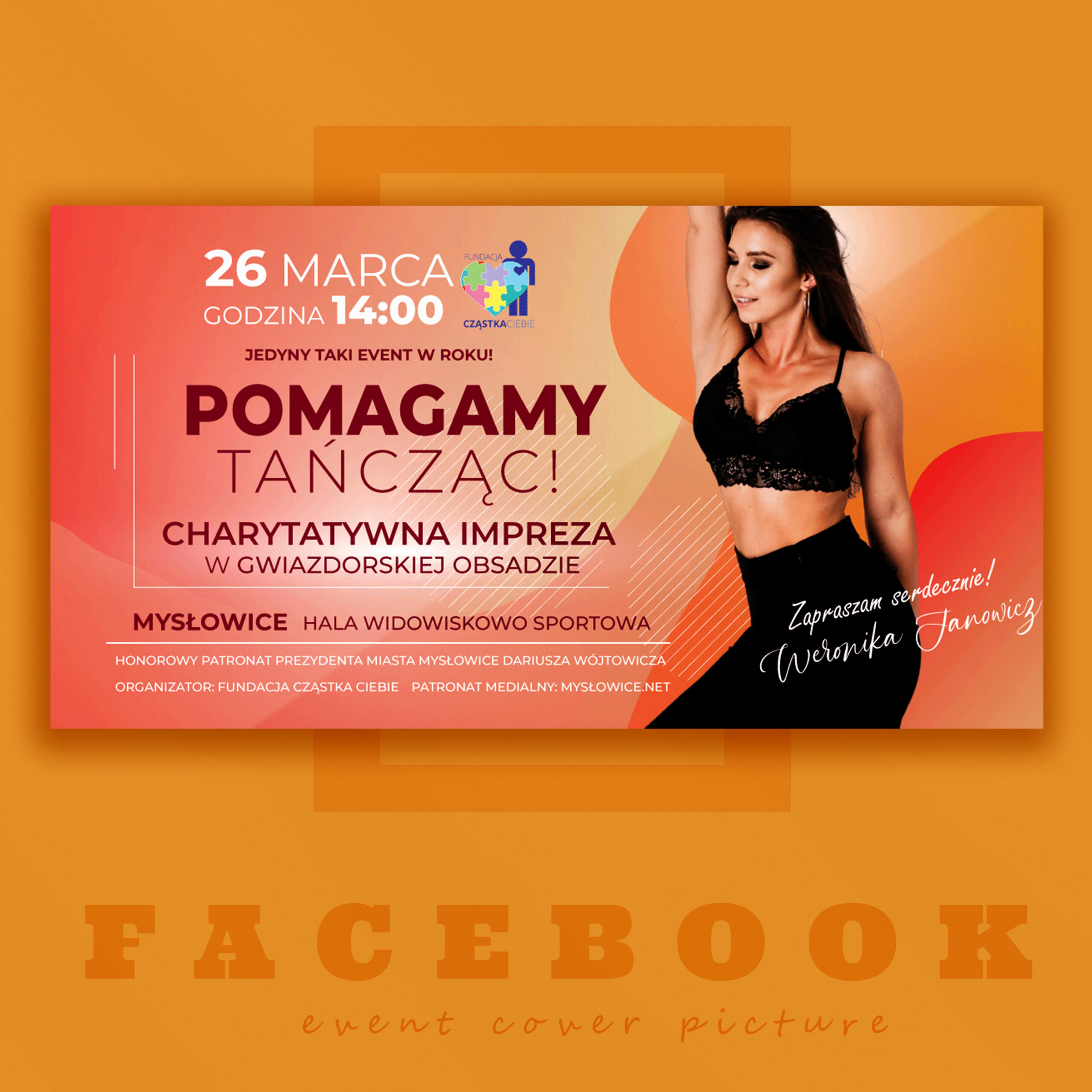 Miałam przyjemność uczestniczyć w projekcie charytatywnym na rzecz Fundacji Częstka Ciebie, którego celem była promocja wydarzenia “Pomagamy Tańcząc”. Moim zadaniem było stworzenie spójnej identyfikacji wizualnej dla tego wydarzenia.